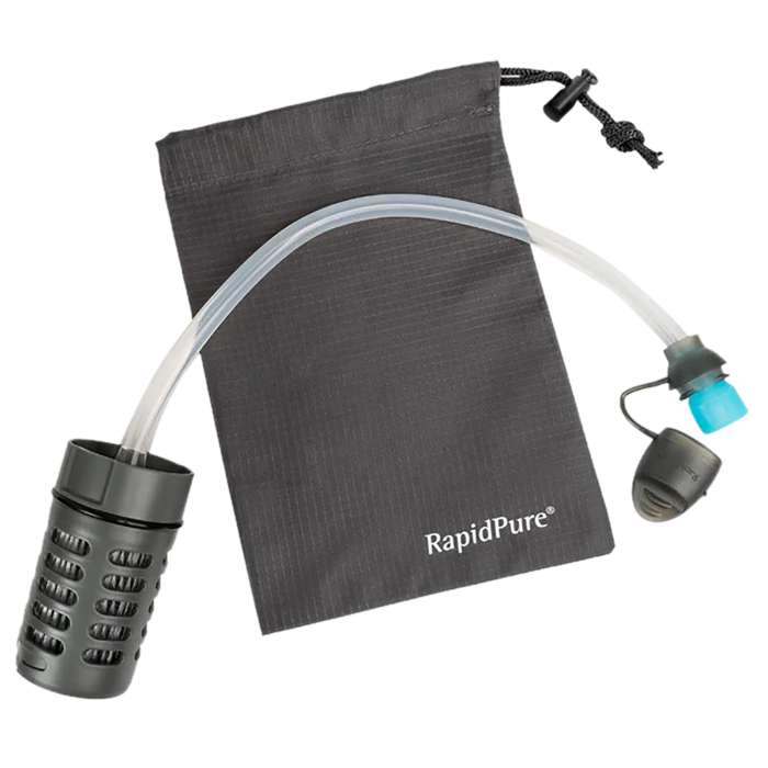 The RapidPure Ultralight Straw Purifier is an innovative solution for those who need clean water on the go. This compact straw is designed to purify water quickly and efficiently, using advanced UltraCeram and OpenPore technology to protect against 99.99% of viruses, bacteria, and parasites. Weighing less than 3 ounces, it's the perfect companion for outdoor adventures or travel. The purifier includes a replaceable filter cartridge, a POD, and a convenient travel pouch. Its sleek design features a bite valve cover, making it easy and comfortable to use. With its black and clear finish, this ultralight straw combines functionality with a modern look.