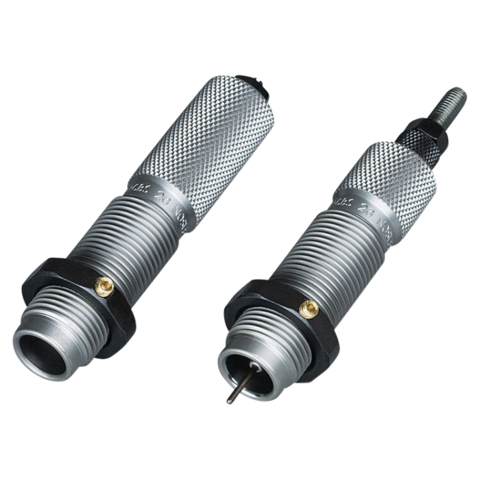 The RCBS 6.5 Weatherby RPM Full Length Die Set is expertly designed for reloading bottleneck rifle cartridges. This two-die set includes a Full Length Sizer Die equipped with an Expander-Decapping Unit, ensuring precise resizing of cases to SAAMI minimum dimensions. The sizer die effectively deprimes and expands the neck to accommodate bullets while incorporating vents to prevent case damage from trapped air or excess lubricant. Additionally, the Seater Die features a built-in roll crimper to secure the bullet as it is seated, offering reliable performance and consistent results for reloading enthusiasts.