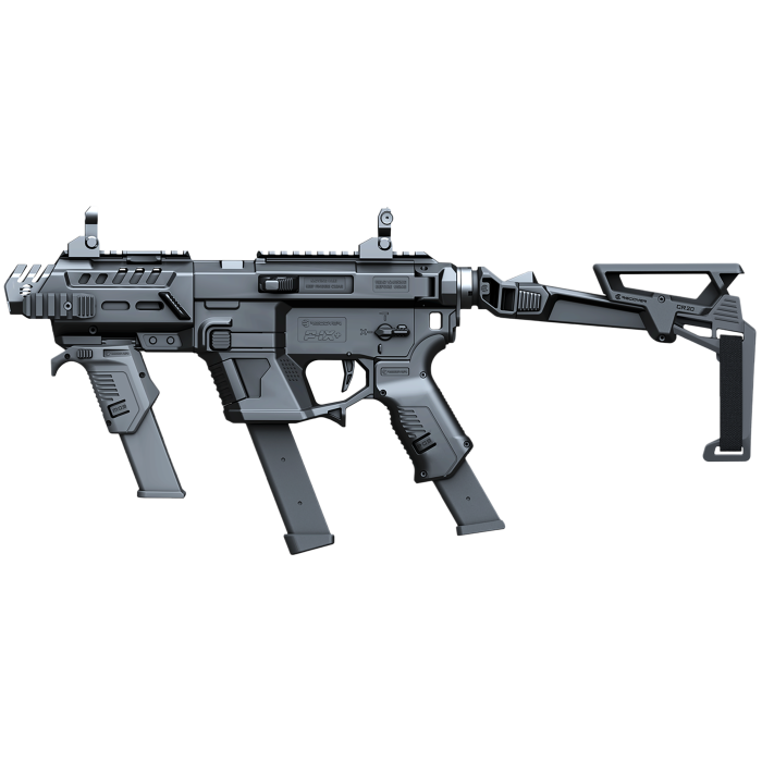 The Recover Tactical Metal Front Guard Folding Brace in black offers unparalleled stability and reliability for your firearm. Engineered with high-grade, lightweight glass-reinforced polymer, this innovative accessory ensures a secure fit without the need for a gunsmith or permanent modifications. Easily installed in under three minutes, it provides the most stable rail mount available, with the added advantage of a Hi Power grip to enhance both the functionality and aesthetics of your gun.