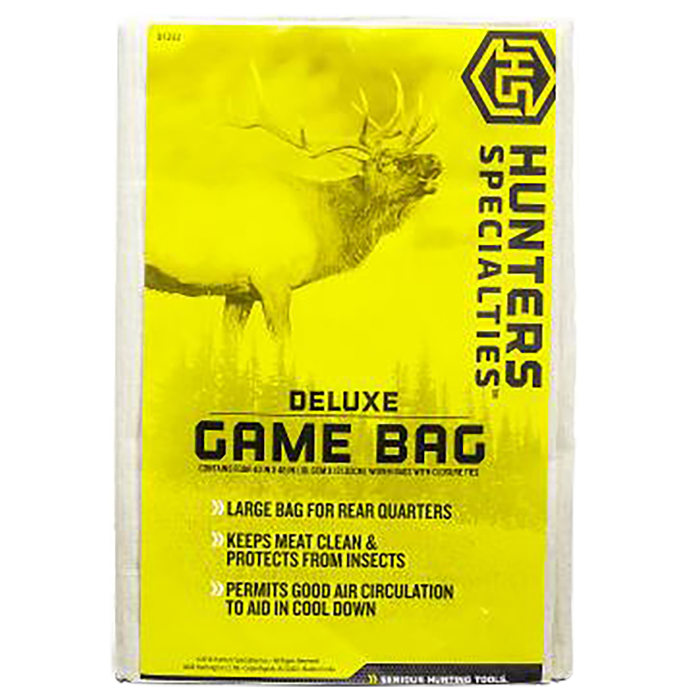 The Hunters Specialties Deluxe Game Bag is expertly crafted from heavy-duty canvas, ensuring durability and reliability for your hunting expeditions. Measuring 40 x 48 inches, this robust bag is designed to accommodate a quarter of an elk, moose, or caribou with ease. Its washable and reusable design helps maintain cleanliness while safeguarding your game from insects. Ideal for hunters seeking a practical and long-lasting solution, this white game bag stands out for its sturdy construction and effective closure tie, making it an essential addition to any hunting gear collection.