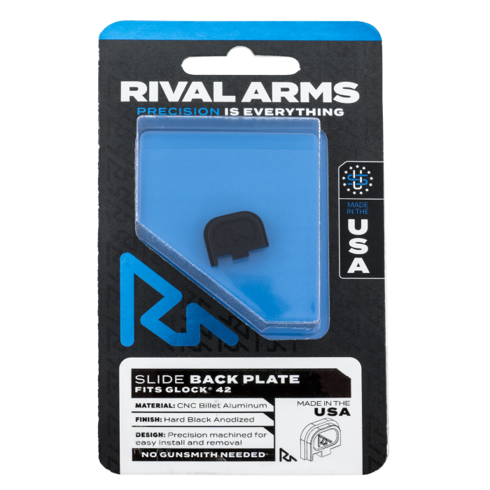 The Rival Arms Aluminum Slide Back Cover Plate for Glock 42 is a premium upgrade designed for durability and style. Crafted with precision from CNC-machined aluminum, it offers a perfect fit and enhanced reliability. Its sleek black anodized finish not only adds a refined look to your firearm but also provides excellent resistance to wear and corrosion. Built to last, this back cover plate is an ideal choice for Glock 42 owners looking to enhance both performance and appearance.
