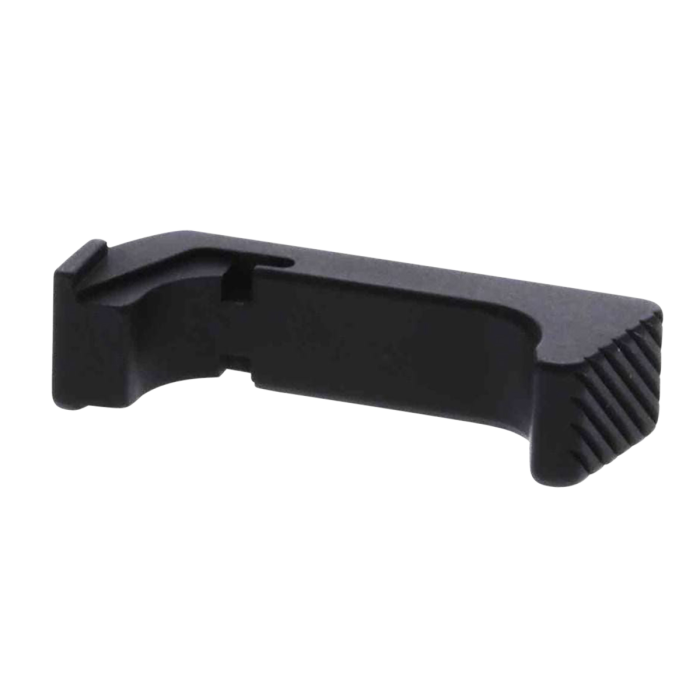 Upgrade your Glock 42 with this precision-engineered magazine release. Crafted from CNC-machined aluminum, this release features a sleek black anodized finish that enhances both durability and style. Its ergonomic design ensures comfortable access and a slimmer profile to prevent accidental drops during reloads. With a single-piece construction, installation is seamless, minimizing maintenance needs. Plus, it includes a new mag release spring for optimal performance. Experience improved functionality and reliability with this expertly designed mag release.