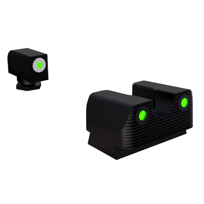Enhance your shooting accuracy with these Rival Arms Night Sights, specifically designed for Glock models 42, 43, 43X, and 48. Crafted from durable steel, this front and rear sight set features tritium inserts that provide a reliable green glow in low-light conditions, ensuring precision even in complete darkness. The front sight boasts a bright green dot with a white outline, while the rear sight features a tritium U-notch design with a green dot and black outline for optimal visibility. The CNC-machined frame offers a snag-resistant construction, making these sights a dependable choice for your pistol.