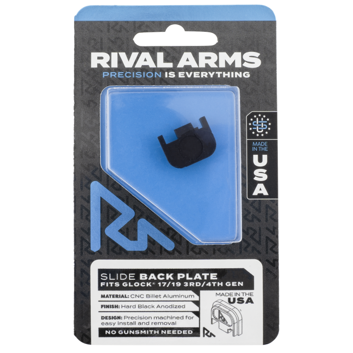 Enhance your Glock Gen3/4 with the Rival Arms Aluminum Slide Cover Plate, expertly CBC machined for precision and durability. Constructed from high-quality aluminum, this cover plate features a sleek black anodized finish that adds a sophisticated touch to your firearm. Designed to provide a perfect fit, it seamlessly integrates with your slide, ensuring reliable performance and a stylish look. Upgrade your Glock with this robust and aesthetically pleasing slide cover plate, crafted to meet the demands of both enthusiasts and professionals.