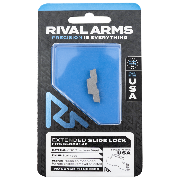 Upgrade your Glock 42 with the Rival Arms Extended Polished Stainless Slide Lock, designed for effortless field stripping. Featuring an extended design, it provides a superior grip for quick and easy takedown. Made from durable stainless steel with a polished finish, it resists chipping, wear, and breakage, ensuring long-term reliability for your firearm. A must-have enhancement for smoother maintenance and lasting performance.