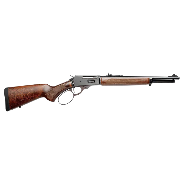 The Rossi R95 is a powerhouse for hunters, offering a balance of versatility and strength with its 45 Colt caliber. Its 16.50-inch hammer-forged barrel ensures accuracy, while the 8-round capacity allows for multiple shots without reloading. Designed with a smooth lever action and a large loading gate, the R95 provides reliable performance in the field. Its compatibility with rails and handguards allows customization to suit any hunting needs. The rifle's adjustable drift front and buckhorn rear sights enhance targeting precision. With a 35.50-inch overall length and weighing 107.20 ounces, the R95 is both manageable and effective for pursuing deer, hogs, and other game. Safety is ensured with a crossbolt mechanism, while the 1:12" right-hand twist solidifies its accuracy.