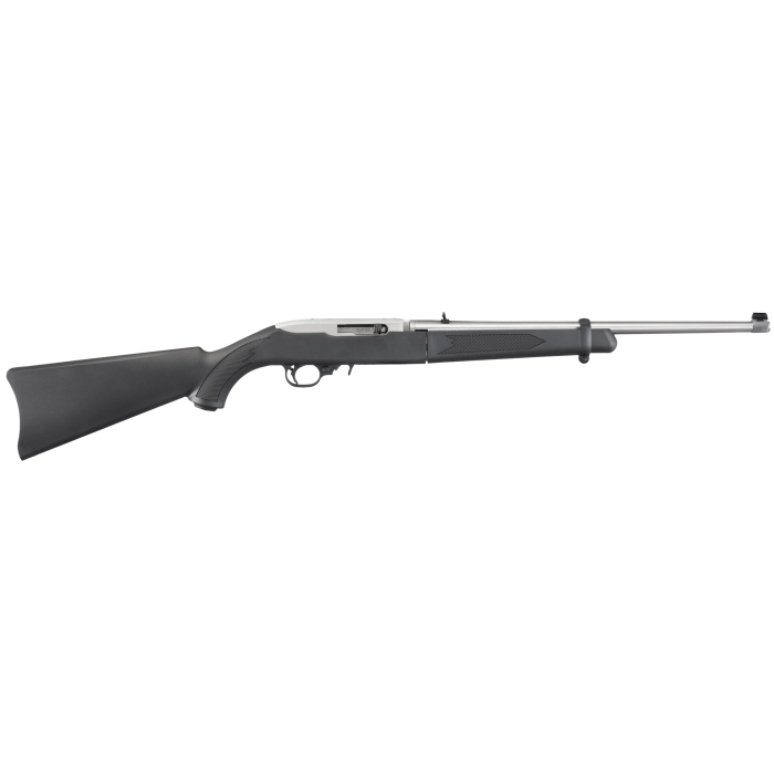 The 10/22 Takedown features easy, quick separation of the barrel from the action for ease of transportation and storage. Takedown is as simple as locking the bolt back and verifying that the rifle is unloaded, pushing a recessed lever, twisting the subassemblies and pulling them apart. It also has an extended magazine release for the flush-mount, detachable 10-round rotary magazine, and a precision-rifled cold hammer-forged barrel. The combination scope base adapter for both Weaver-style and .22 "tip-off" scope mounts is provided with every rifle. Included is a backpack-style bag, which provides ample storage with extra pockets and magazine pouches.
