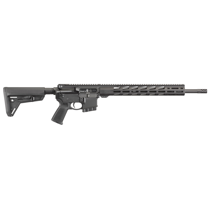 The Ruger AR-556 MPR rifle features a pistol-length gas system providing smoother operation and reduced felt recoil. The matte black oxide chrome-plated bolt carrier inside diameter and chrome-plated gas key inside diameter offer exceptional resistance to hot gases. The lower receiver is fitted with a Magpul MOE grip and a Ruger Elite 452 two-stage AR-trigger, delivering a smooth, crisp 4.5-pound trigger pull. The flattop upper receiver, made from forged aerospace-grade 7075-T6 aluminum, includes a forward assist, dust cover, and brass deflector, ensuring durability and enhanced functionality.