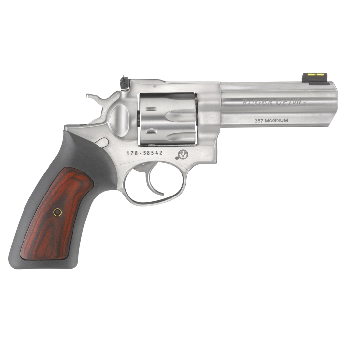 Ruger GP100 Standard 357 Mag 4.2" 7 rd Black Rubber w/Wood Insert Grip Stainless