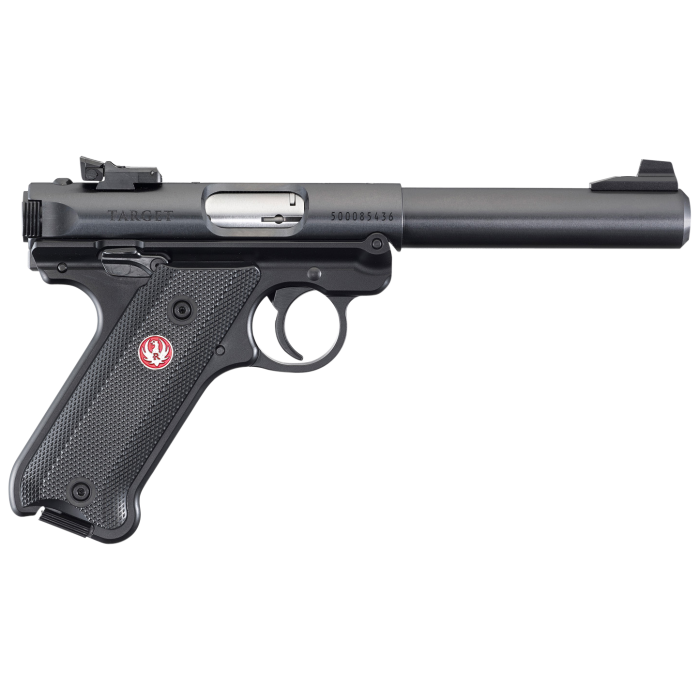 The mark iv features a simple, one-button takedown for quick and easy field-stripping and proper chamber-to-muzzle cleaning.Features a conveniently located push-button magazine release on the left side of the frame, cold hammer forged barrel bull barrel, precision cnc-machined aluminum grip frame, blued metal finish, sighting system features a drilled and tapped receiver for weaver or picatinny rail for easy mounting of optics, smooth contoured black synthetic grip and a fixed front sight with an adjustable rear.Includes two 10rd magazines.