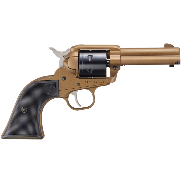 Blade front and integral notch rear sights.Chambered for affordable.22 lr ammunition.Transfer bar mechanism and loading gate interlock provide an unparalleled measure of security against accidental discharge.Cold hammer-forged barrel results in ultra-precise rifling that provides exceptional accuracy and longevity.Cerakote finish provides rugged reliability in all environments.Checkered synthetic grips on a single-six pattern grip frame.
