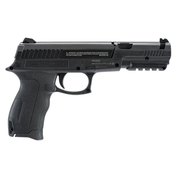 The Umarex DX17 Air Pistol is a top choice for enthusiasts seeking a reliable and enjoyable plinking experience. Crafted with precision, this spring-piston air gun fires .177 BBs and features a built-in ammo reservoir with a 15+1 capacity for extended shooting sessions. The DX17 is designed with a fiber optic front and rear sight, making target acquisition quick and accurate. An integrated Picatinny rail allows for additional customization, while the ergonomically designed grip ensures comfort during use. The serrated slide offers effortless handling, and the flip-up loading port simplifies the reloading process. Additionally, this kit includes 200 steel BBs, providing everything you need to start shooting right away. Elevate your shooting practice with the versatile and user-friendly Umarex DX17.