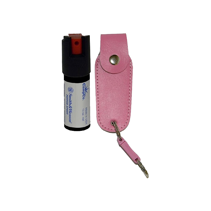 Introducing the S&W Pepper Spray 10 ft Pink Leather, the ultimate solution for personal protection in a sleek and stylish package. Crafted for those who prioritize safety without compromising on style, this keychain pepper spray offers a powerful defense mechanism with just a simple press of the actuator button. Designed for efficiency, its formula contains oleoresin capsicum, derived from hot peppers, which causes intense irritation to the eyes, throat, and skin, effectively immobilizing attackers for up to 30 minutes. Endorsed by law enforcement, this self-defense tool ensures peace of mind with a 10-foot range, though it may vary with wind conditions. Encased in a vibrant pink leather holster, it not only prevents accidental misfires but also adds a touch of elegance. The quick-release keychain feature guarantees immediate access, so protection is always within reach, whether on a keychain or in a purse. Proudly made in the USA, this 0.5-ounce unit is a must-have for anyone seeking both style and security in a compact form.