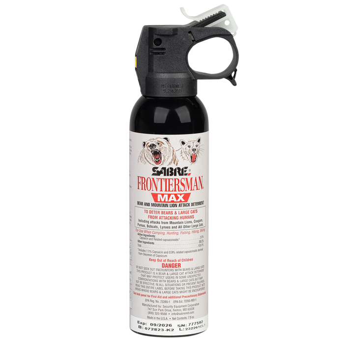 Experience enhanced outdoor safety with the SABRE Frontiersman Bear and Mountain Lion Spray. Engineered for ultimate protection, this spray features a powerful 40-foot range, allowing you to maintain a safe distance from potential threats. With a robust 7.90 oz size, it effectively repels both bears and mountain lions. The active ingredient, capsaicinoids, ensures maximum stopping power, making it an essential tool for hikers and campers. Trust in its superior performance for peace of mind during your wilderness adventures.