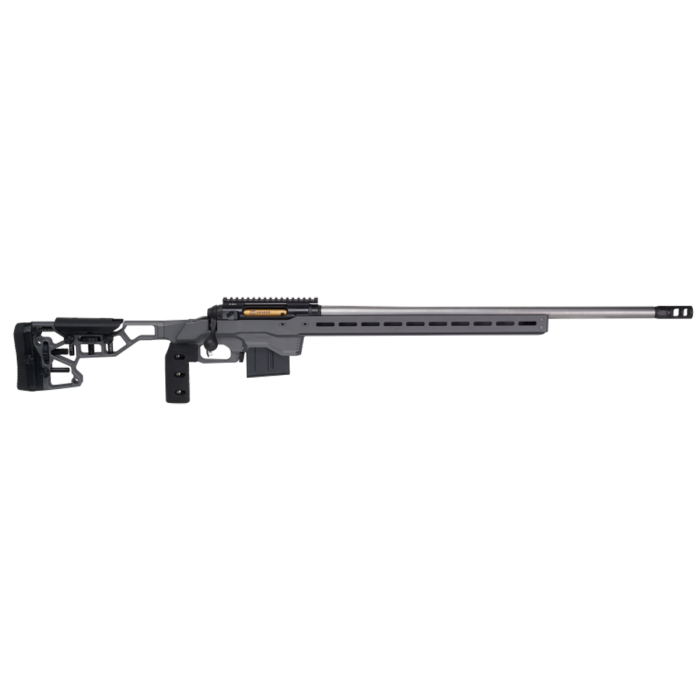 The Savage 110 Elite Precision is a high-performance rifle tailored for precision shooting enthusiasts. It features a robust 30-inch threaded barrel chambered in 300 PRC, designed for long-range accuracy. The rifle's MDT ACC Chassis provides a customizable platform with a full-length ARCA rail, allowing for versatile accessory mounting. The stainless steel receiver, combined with a blued/black metal finish, ensures durability and a sleek appearance. Weighing in at 14.95 lbs, the rifle maintains an ideal balance for stability. The AccuTrigger system enhances shooting precision with its adjustable trigger pull, ranging from 1.5 to 4 pounds. The twist rate of 1:8.5" optimizes bullet stabilization for improved accuracy. With a capacity of 5+1 rounds, this right-hand bolt-action rifle is engineered for competitive precision shooting, offering unmatched performance and reliability.