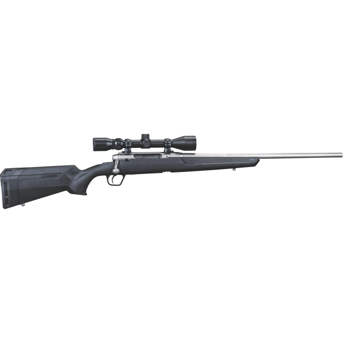 Savage Arms Axis bolt-action centerfire rifle blends unflinching performance and impressive accuracy. It sports a modern design that features sleek contours, recoil pad vents, and a textured, easy-to-control grip. The Axis also features a carbon-steel barrel, a black synthetic stock, a drilled and tapped receiver, and offers silky-smooth bolt operation.
