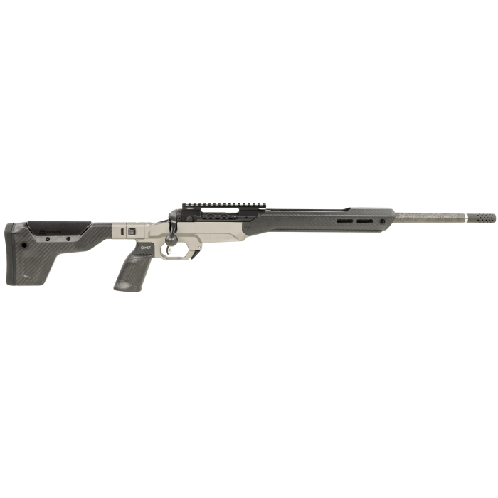 The Savage 110 Ultralite Elite is a top-tier bolt-action rifle designed for precision and performance. Featuring an exclusive Proof Research carbon fiber wrapped stainless steel barrel, this rifle ensures durability and accuracy in every shot. The MDT HNT26 chassis with a carbon fiber forend and integrated Arca rail offers a lightweight yet robust platform, while the gunmetal grey Cerakote finish on the magnesium center section adds an extra layer of protection and style. The OmniPort muzzle brake effectively reduces recoil, enhancing shooting comfort and control.