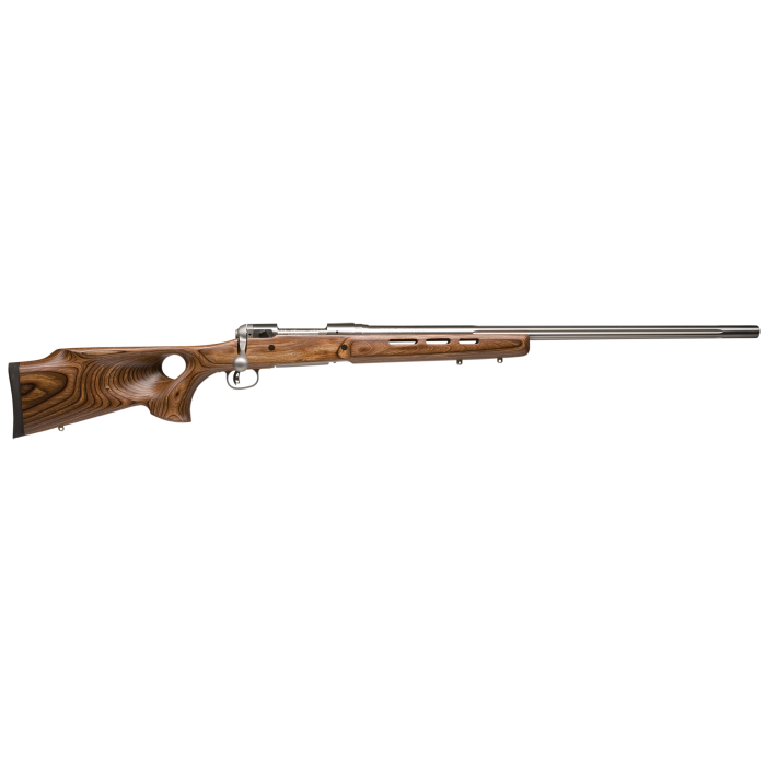 Equipped with a laminated thumbhole stock and a matte finish stainless steel barrel, the Savage Model 12 BTCS combines durability with a refined aesthetic. The drilled and tapped receiver allows for easy scope mounting, enhancing accuracy for long-range shooting. The heavy fluted barrel, measuring 26 inches, ensures optimal stability and precision with a 1:12" twist rate.