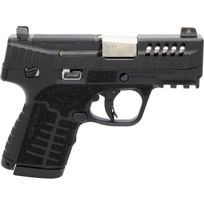The Savage Stance 9mm is a compact semi-automatic pistol designed for those seeking reliability and performance. With a 3.20-inch barrel, this firearm offers precision and ease of handling, making it suitable for both experienced shooters and newcomers. The ported slide enhances control by reducing muzzle rise, allowing for faster follow-up shots. It features a 13+1 capacity, ensuring you have ample rounds for any situation. The black glass-filled nylon grips provide a secure and comfortable hold, making it an excellent choice for everyday carry or range use.