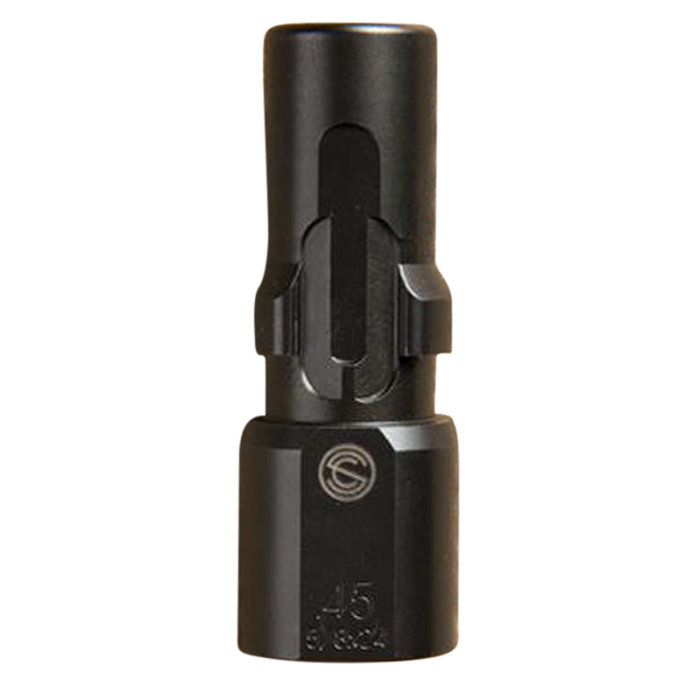 Elevate your shooting experience with the SilencerCo 3-Lug Muzzle Device, expertly designed for seamless integration with .45 ACP firearms. This sleek black adapter facilitates quick and secure suppressor attachment, ensuring optimal performance with its precise 5/8x24 threading. Crafted for durability and reliability, this silencer adapter enhances your firearm's versatility, making it an essential addition for enthusiasts seeking enhanced control and reduced noise.
