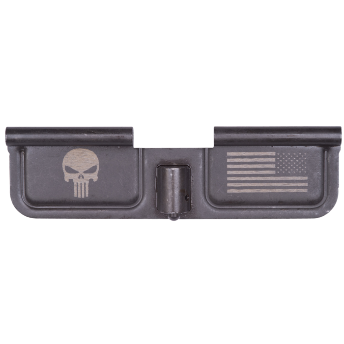 Elevate your AR15 with the Spikes Tactical Punisher Ejection Port Door, crafted from durable stamped steel and finished in sleek black. This MilSpec component features a phosphate coating for enhanced protection, ensuring longevity and reliability. The standout laser-engraved Punisher emblem adds a personal touch, making your firearm truly unique. Easy to install, this ejection port door offers both style and functionality, distinguishing your AR15 from the rest.