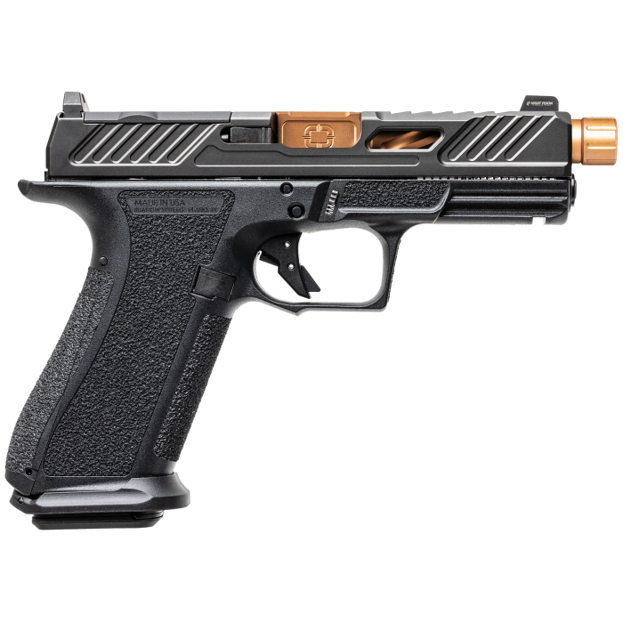The Shadow Systems XR920 is a high-performance 9mm pistol designed for precision and adaptability. Engineered with law enforcement in mind, this crossover firearm boasts a 10+1 capacity and a sleek 4.5-inch barrel. The XR920 stands out with its customizable ergonomics, offering interchangeable backstraps and an aggressive wraparound grip texture for enhanced control. Its slide features directional serrations and a weight-reducing cut, ensuring quicker draw times. The flat-faced aluminum trigger and spiral-fluted, match-grade threaded barrel deliver superior accuracy. With an optic-ready slide that accommodates most major RDS optics and tritium night sights for low-light targeting, the XR920 is built for both reliability and versatility.