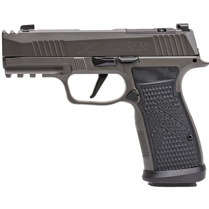 Experience the pinnacle of precision with the Sig Sauer P365 AXG Legion, a 9mm firearm designed for enthusiasts who demand excellence. This model stands out with its robust alloy Macro grip frame, complemented by distinctive G10 Chevron grip panels, ensuring a secure and comfortable hold. The optic-ready serrated slide, featuring an integral compensated design, enhances your shooting experience by reducing recoil and improving accuracy. Equipped with XRAY Night Sights, it ensures superior visibility in low-light conditions. The extended magwell facilitates quick and efficient reloads, while the Legion Cerakote Gray finish adds a touch of elegance and durability. With a 3.10" barrel and a capacity of 10+1 rounds, this striker-fired pistol offers a perfect blend of innovation and performance, making it an exceptional choice for both seasoned shooters and newcomers alike. Three magazines are included to keep you ready for any situation.