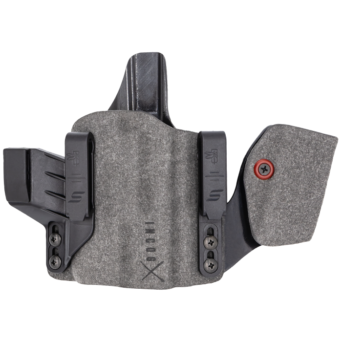 The Safariland IncogX IWB Holster in Black/Gray offers a tailored fit for the Sig P365XL, providing superior concealment and comfort. Crafted from durable Boltaron, this right-hand holster features passive retention with adjustable tension, ensuring a secure yet customizable draw. Designed with versatility in mind, the IncogX includes multiple clip strut shims in varying sizes, allowing for personalized concealment enhancement. Its ergonomic and user-adaptable design includes an RDS-compatible structure and multipositional deep concealment capabilities, making it an ideal choice for those seeking functionality and ease of access.