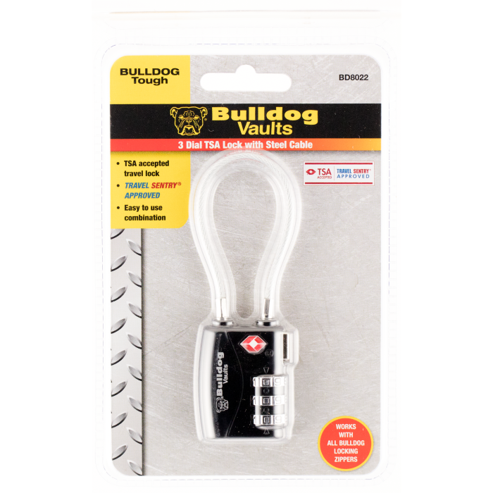 Bulldog Metal TSA Cable Lock for Zippers 4.5 Inch Black Combination
