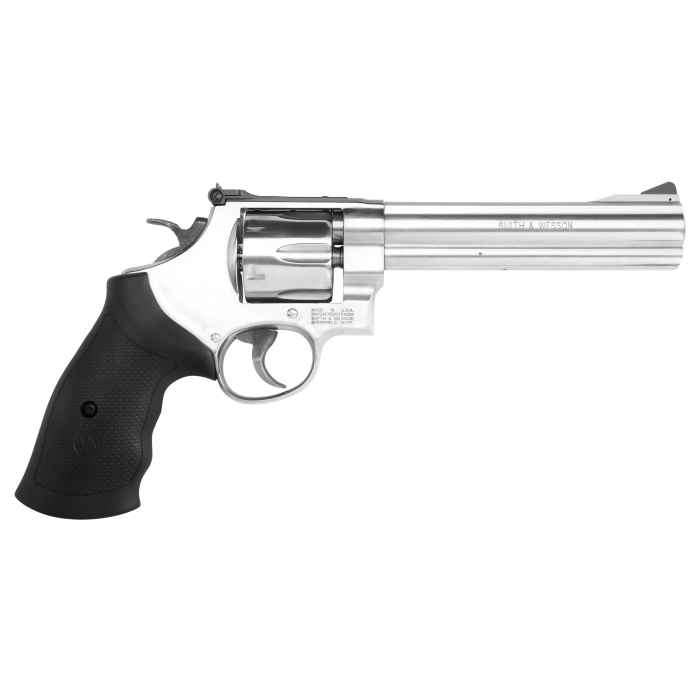The Smith & Wesson model 610 10mm is a stainless steel large n-frame revolver.It is ideally suited for personal protection or handgun hunting with the popular 10mm auto cartridge.Three moon clips are included.