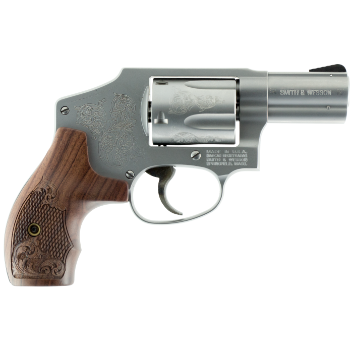 The Model 640 is aesthetically pleasing as well featuring exquisite diamond-tipped machine tool scroll engravings on its frame and cylinder complemented by an engraved wood grip.