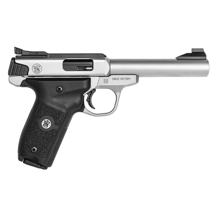 The sw22 victory target is constructed on a single-action, enclosed hammer-fired, blowback semi-automatic design.Chambered in.22 lr, featured with a match-grade, interchangeable bull barrel; stainless steel frame; steel-reinforced polymer thumb safety; target sights; target trigger; adjustable trigger stop and textured polymer grip panels included for both left & right hand shooters.The sw22 field strips easily by loosening one takedown screw.Includes two magazines and a picatinny-style rail.*ma compliant.