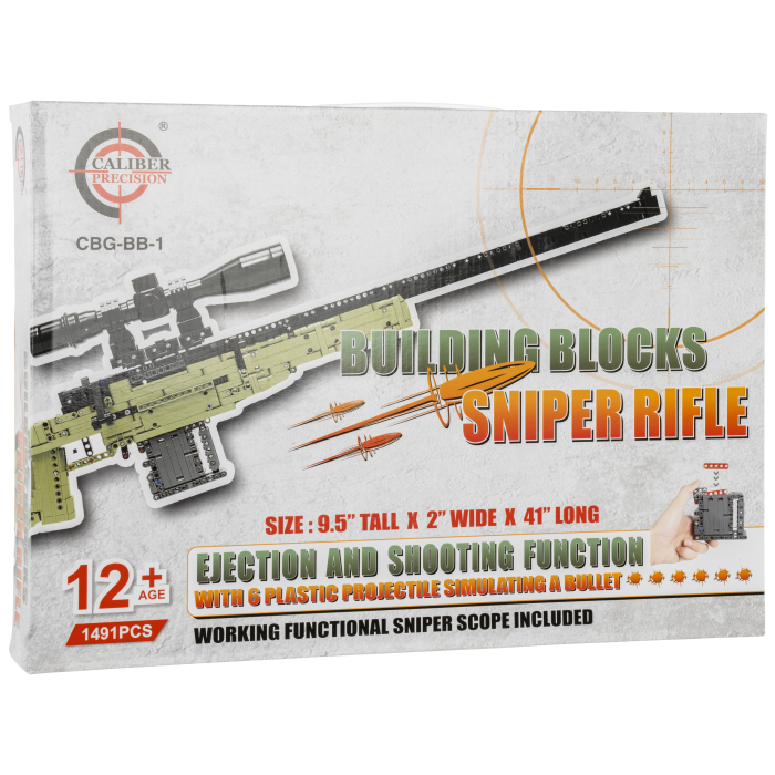 Unleash your creativity with the Sniper Building Block set, a 1491-piece kit designed for enthusiasts and aspiring builders. This detailed construction set allows you to assemble a model inspired by a Remington rifle, featuring a striking black and green color scheme. Enjoy the realistic experience with a functioning bolt action handle, a working trigger, and an adjustable scope. The set includes six plastic projectile blocks that simulate real bullets for an added touch of authenticity. With spare parts included, this building block kit offers both challenge and satisfaction for hobbyists and collectors alike.