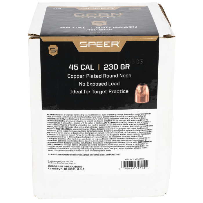 Speer Copper Plated .45 Cal 230gr Round Nose Projectiles 500ct