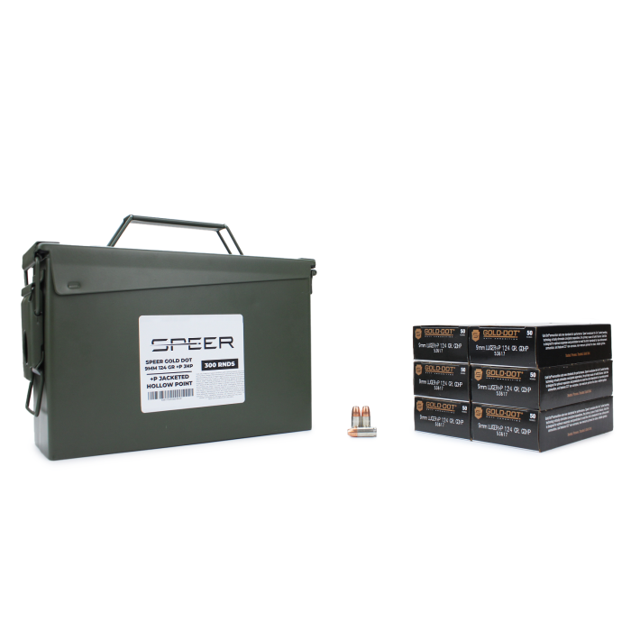 Speer Gold Dot 9mm 124 Gr +P JHP 300 Rounds in Heavy Duty Ammo Can
