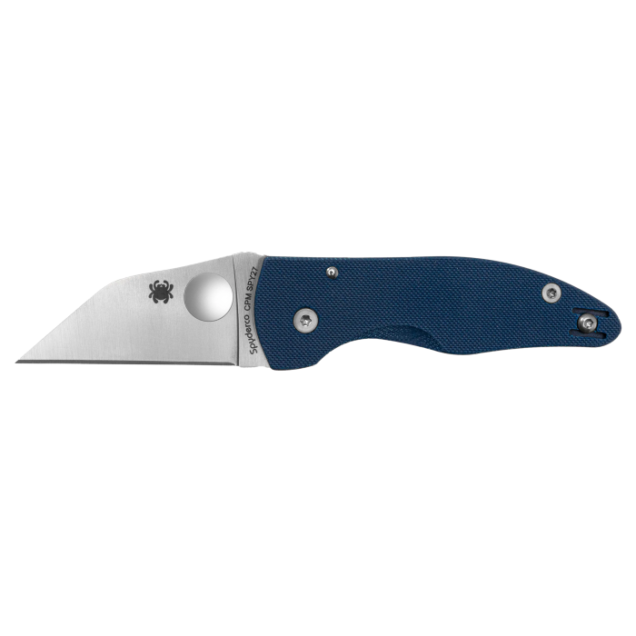 The Spyderco® MicroJimbo is a compact EDC folding knife designed to deliver a highly controlled Wharncliffe cutting profile in a small carry size. Its 2.45 in CPM SPY27 stainless steel blade with a satin finish offers a balanced mix of edge retention, toughness, and corrosion resistance. Cobalt blue G10 handle scales and a secure lock make it a capable everyday cutter with a clean, modern look.