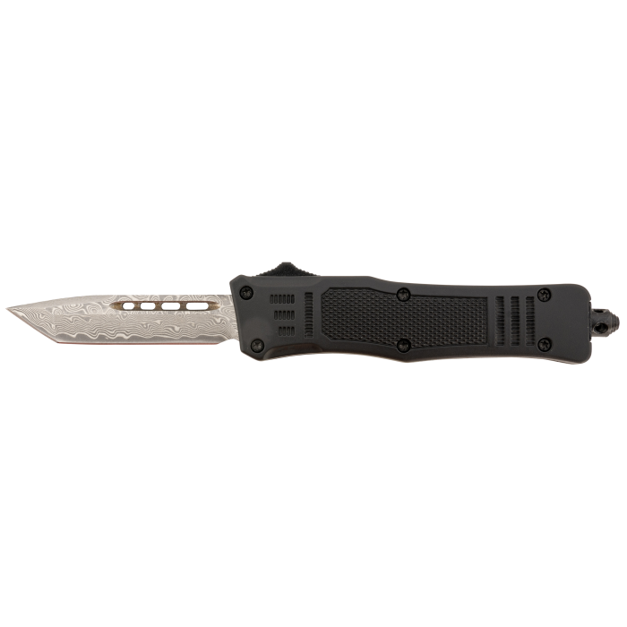 The Steel River Knives Spartan Mini Tanto features a 2.75" real Damascus blade with 37 layers and a 440 core for strength and durability. Designed with a sleek black zinc aluminum handle, this knife is both lightweight at 4.50 oz and highly functional. Its plain edge and compact size make it a perfect companion for precision tasks and everyday carry.