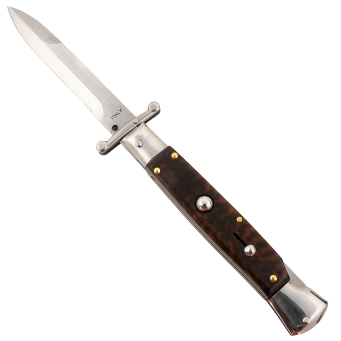 Steel River Knives Italian Bayonet features a 3.9-inch 440c steel blade, combining durability and sharpness in a sleek Italian Bayonet design. Weighing just 4.20 oz, it offers a lightweight and reliable cutting experience. Its elegant snakewood handle enhances grip and style, and its side-opening design ensures smooth and efficient use. Perfect for collectors and outdoor enthusiasts.