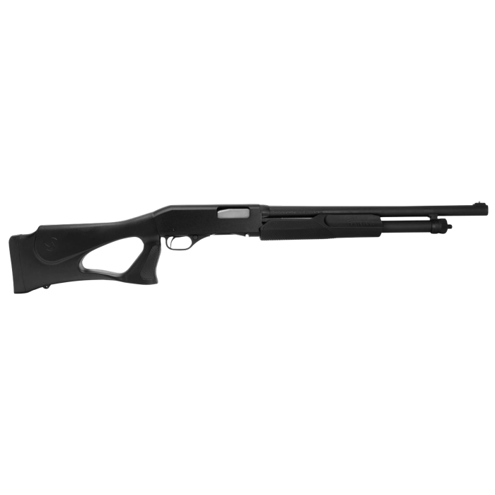 The 320 security comes standard with an ergonomic thumbhole stock for improved handling and a sturdy grip.It features an 18.5" barrel with a matte black forend and thumbhole stock with texturing, smooth, reliable pump action, proven rotary bolt and dual slide bars.
