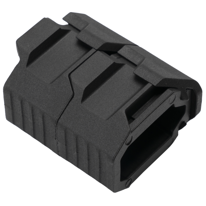 Upgrade your shooting experience with the Strike Industries Cobra Angled Grip with Cable Management in sleek black. Engineered for precision and stability, this fore grip features a unique barricade stop with a ridged face to ensure no slip during shooting. Its innovative cable management system allows for seamless routing on your handguard, providing 90-degree or U-shape configurations. Made from high-strength SI Polymer Extreme material, this lightweight grip offers multiple ergonomic options for enhanced weapon control and manipulation. Elevate your tactical performance with this versatile and durable addition to your firearm setup.