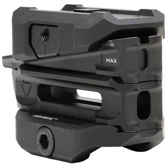 The Strike Variable Optic Mount for Aimpoint Micro Standard is crafted for versatility and precision, offering a user-defined height adjustment to suit your specific setup. Designed to fit the Aimpoint Micro Standard footprint found on many popular red dots, this mount provides a height range from 1/3 co-witness to a maximum of 1.93 inches, allowing for incremental adjustments using notches on the slider. Constructed from lightweight, high-strength 6061-T6 aluminum, it is precision-machined to ensure durability and reliability. Once installed and properly torqued, it is engineered to maintain zero even after reinstallation, delivering consistent performance and peace of mind. Its compatibility with Aimpoint T-1, T-2, H-1, H-2, or other optics with a similar housing height ensures seamless integration into your setup.