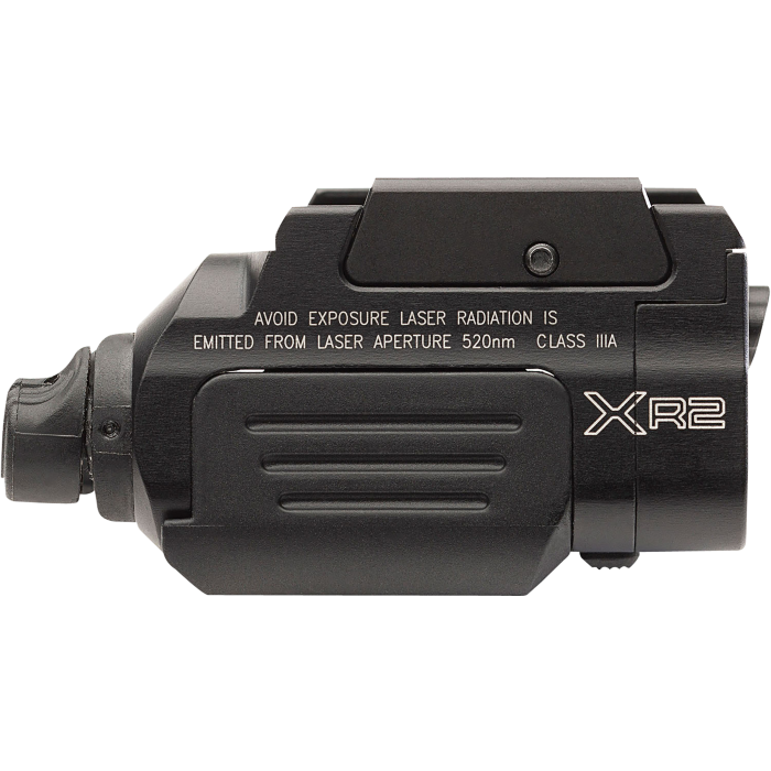 Elevate your tactical setup with the SureFire Compact 800 Lumens LED Green Laser Weapon Light, designed for exceptional performance and versatility. This ultracompact marvel offers an impressive 800 lumens of bright, recoil-proof LED light, perfect for any low-light situation. Its integrated 5.0 milliwatt laser can be activated independently or alongside the light, providing adaptable targeting options. Crafted from durable black anodized aluminum, this weapon light is both weatherproof and recoil-resistant, ensuring reliability in any environment. The rechargeable B13 Lithium Polymer battery enhances convenience and sustainability, while the intuitive push button and toggle switch allow effortless operation. At just 2.30 oz and with a sleek design of 2.46 inches, it fits securely on a wide array of pistols, customizable with included cross blocks. Experience the future of weapon lighting with SureFire's advanced technology.
