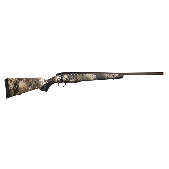 The T3x Lite receiver incorporates a widened angular ejection port, making it easier to feed one cartridge at a time. It also features additional screw placements on top of the receiver for attaching a Picatinny rail, providing flexibility for various optic mounts. The receiver is finished in Cerakote Midnight Bronze, adding both durability and a distinctive look.