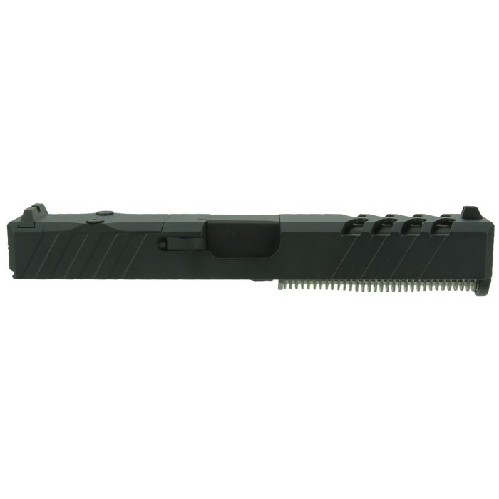 Transform your Glock 22 with the TacFire RMR Complete Kit, designed to enhance performance and precision. This comprehensive kit includes a robust .45 ACP 10-inch barrel and a matching bolt carrier group, both crafted in the USA for superior quality. The slick side upper receiver pairs seamlessly with the slim, free float MLOK handguard, offering a sleek and modern look. The complete lower parts kit ensures seamless assembly, while the MilSpec components like the receiver end plate, commercial castle nut, and pistol buffer tube with foam cover provide unmatched reliability. Included are a heavy buffer, buffer tube spring, MilSpec charging handle, dust cover, forward assist, and a 5/8x24 linear compensator to round out this exceptional package, elevating your Glock 22 to new heights.