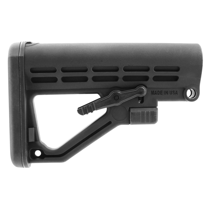 Crafted for the discerning firearm enthusiast, this TacFire MilSpec Black Stock is a testament to precision engineering. Constructed from premium 6061T6 aluminum, it boasts exceptional durability and strength. The stock is reinforced with a resilient Class 2 Type III Black Hard Anodize finish, ensuring it withstands rigorous use and harsh conditions. Designed with modern innovation, it seamlessly integrates with your firearm, offering reliable performance and a sleek, contemporary look.