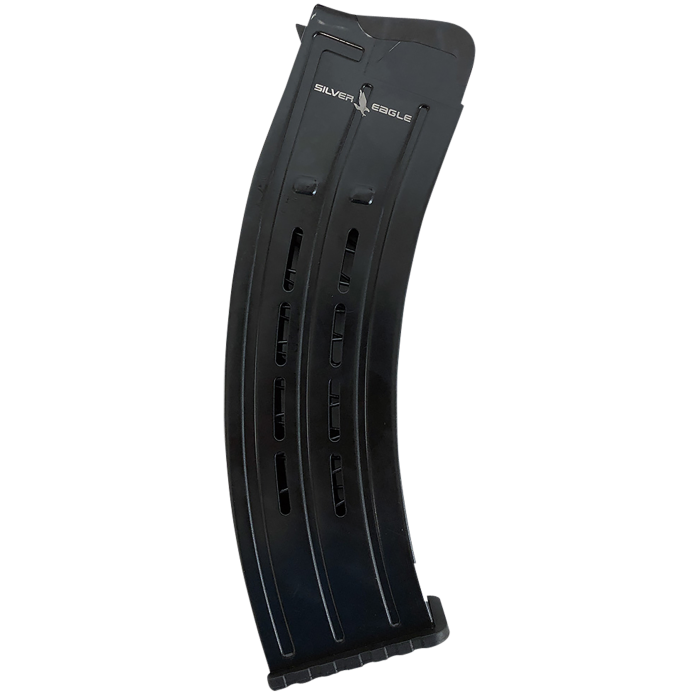 The Silver Eagle Arms MAG10TAC is a robust 10-round magazine specifically designed for 12 gauge firearms. Crafted from durable metal, it ensures longevity and reliability in high-pressure situations. This tactical magazine is compatible with the Silver Eagle TAC model, making it a perfect fit for those seeking enhanced firepower and seamless performance. Its sleek black finish not only adds to its aesthetic appeal but also provides a tactical advantage in low-visibility environments.