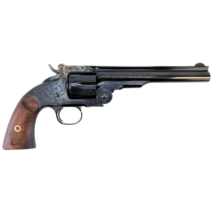 The Taylors and Company Schofield revolver captures the elegance and utility of a historic design while showcasing modern craftsmanship. Featuring a forged steel blued engraved frame, this top-break revolver offers seamless reloading with one hand, paying homage to its origins as a cavalry pistol. Its exposed hammer and break-open action enhance its efficiency, while the 7-inch blued barrel ensures accuracy for revolver enthusiasts. The two-piece walnut grip not only provides a solid hold but also highlights its classic aesthetic. Chambered in 45 Colt (LC) with a six-round capacity, its iconic feel and historical significance set it apart from other firearms, making it a favorite among collectors and Western shooters alike.