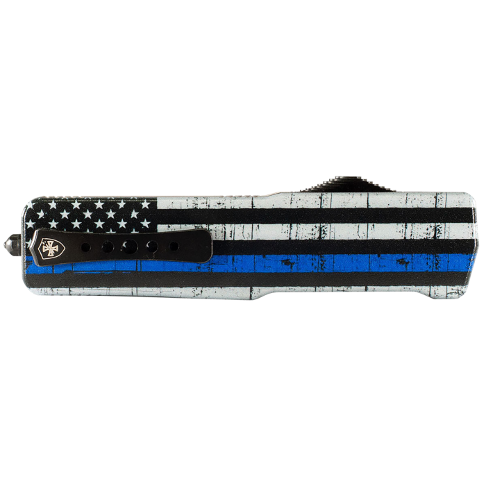 The Templar Knife Tanto Blade with a Black & White Handle and Blue Line offers a premium lightweight design with re-engineered internals for smooth action. Constructed from 6061-T6 anodized aluminum, its knurled handle provides enhanced grip. Featuring a 3.50" powder-coated D2 steel part-serrated blade, the knife has a closed length of 5.25" and an overall length of 8.75", combining durability, precision, and dependability at 4.80 oz.