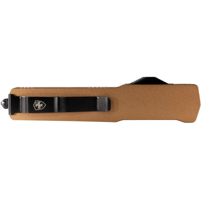 The Templar Knife Premium Slim Bronze Drop Point features a precision-machined 6061-T6 anodized aluminum handle for superior grip and durability. Its CNC-engineered internal components provide smooth, reliable action. With an 8.09" powder-coated D2 steel blade, 3.50 oz weight, and 5" closed length, it combines lightweight design with robust performance, making it an ideal tool for any task.