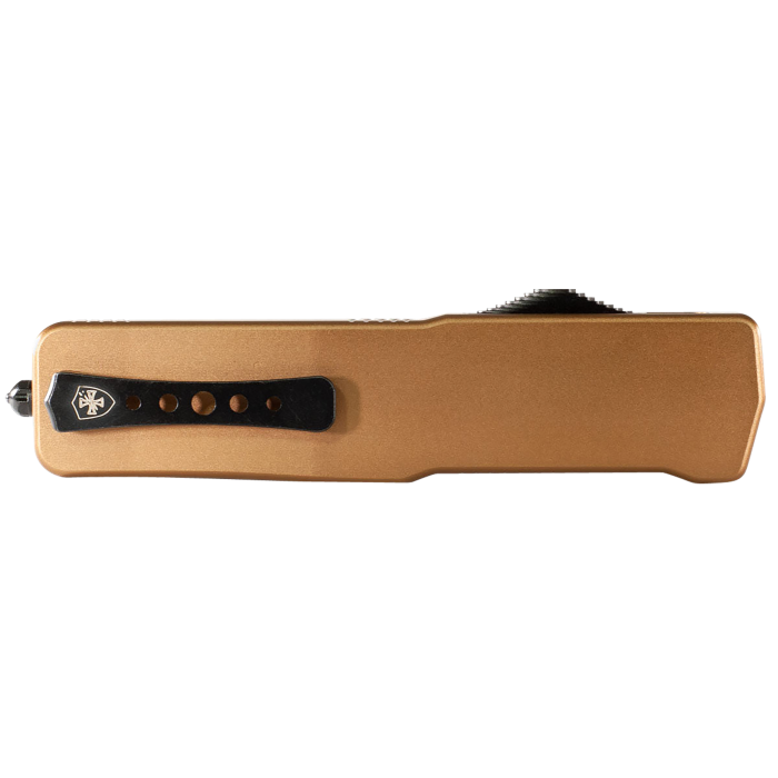 The Templar Knife Premium Bronze Tanto Lightweight Series features a 3" tanto blade made of powder-coated D2 steel with a solid 6061-T6 anodized aluminum handle for improved durability. With a closed length of 4.50" and weighing just 3.40 oz, it offers an incredibly smooth and reliable action thanks to its CNC re-engineered internals and knurled grip for enhanced control and precision.